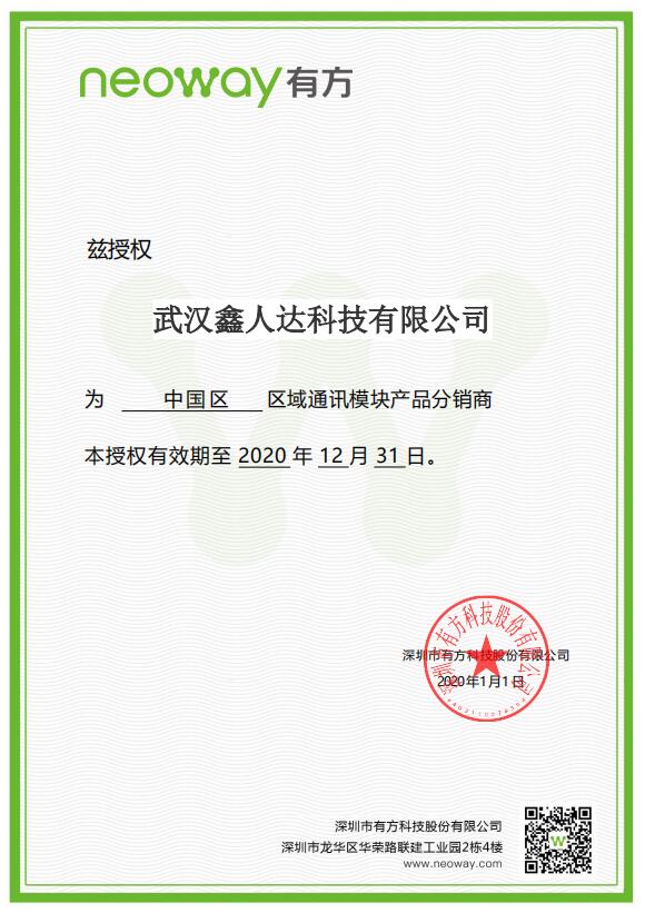 鑫人達喜獲深圳有方2020大中華地區一級代理資質,至此鑫人達已經連續兩年獲得有方模塊一級代理資質。