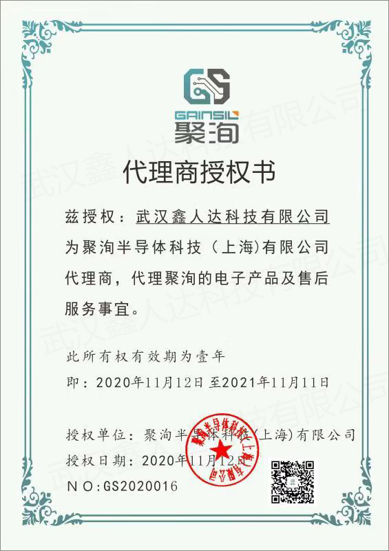 鑫人達喜獲聚洵半導體科技(上海)有限公司一級代理資質,代理聚洵的電子產品及售后相關事宜。