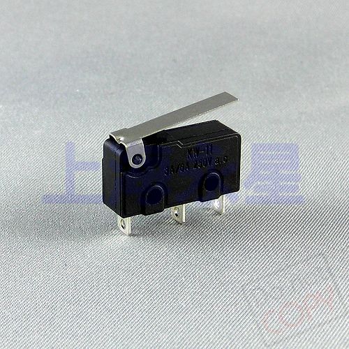 微動開關是一種施壓促動的快速開關,又叫靈敏開關。其工作原理是外機械力通過傳動元件(按銷、按鈕、杠桿、滾輪等)將力作用于動作簧片上,并將能量積聚到臨界點后,產生瞬時動作,使動作簧片末端的動觸點與定觸點快速接通或斷開。當傳動元件上的作用力移去后,動作簧片產生反向動作力,當傳動元件反向行程達到簧片的動作臨界點后,瞬時完成反向動作。微動開關的觸點間距小、動作行程短、按動力小、通斷迅速。其動觸點的動作速度與傳動元件動作速度無關。 微動開關以按銷式為基本型,可派生按鈕短行程式、按鈕大行程式、按鈕特大行程式、滾輪按鈕式、簧片滾輪式、杠桿滾輪式、短動臂式、長動臂式等等。 微動開關在電子設備及其他設備中用于需